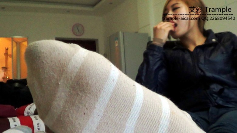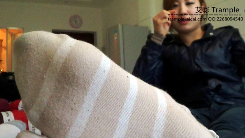 内容:在靴子里捂了很久的脏臭条纹棉袜虐奴,踩肚子,脚踩脸强迫闻臭袜子,踢脸脚耳光,直接吐痰和吐嚼烂的水果到贱奴嘴里,胳膊抡圆了暴力大耳光,还有一段第一人称脚底特写调教,脏袜底十分清晰