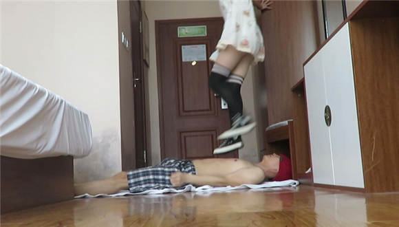 御小主,穿着小裙子,黑丝帆布鞋,对着贱狗的身体剁踩,全体重狠狠剁踩贱狗身体,站在矮椅子上跳向贱狗的身体一顿践踏!