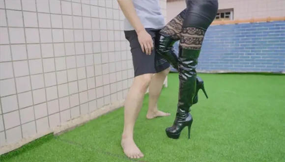 【内容简介】:老公出轨被妻子踢裆教训。星奈穿着黑长靴,一脚一脚地踢在老公的裆部上、用膝盖顶,用靴子踩。然后再脱下长靴,取出捂住的脚,脚汗冒出的蒸汽让老公吸进肚子里。接着裸足在他身上跳踩。然后再次穿上长靴踢裆,并抓住他的两条腿,用靴子在老公两腿之间碾踩蹂躏。最后将老公的脖子踩在墙上,看着他慢慢滑下去……