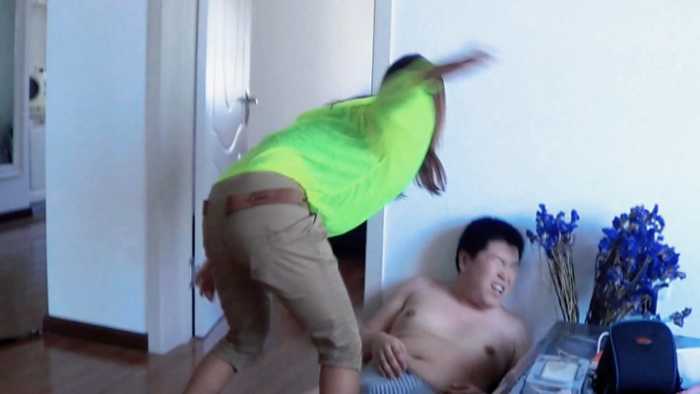 剧情:乞丐敲门讨饭,丹丹开门后乞丐发现只有丹丹自己在家,馋的直流口水,趁丹丹不注意图谋不轨,被丹丹挣脱,乞丐并不死心反复尝试,一开始丹丹还打算挣脱后逃跑,后来鼓起勇气爆揍乞丐,最后乞丐被虐的磕头求饶。