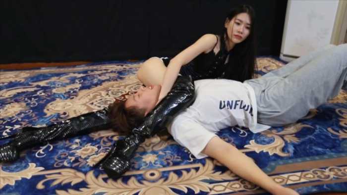 【内容简介】:小伙来挑战女格斗家芷晴,芷晴用她优秀的腿绞技巧硬控了小伙, 小伙被夹得完全透不过气,几近晕厥。