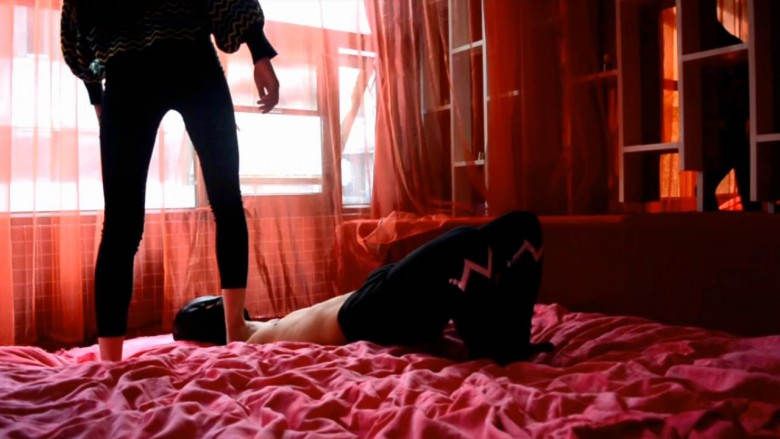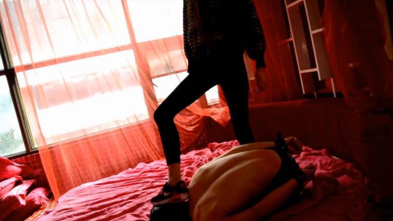 『奴隶岛』—萱萱运动鞋踢踹惩罚按腿奴