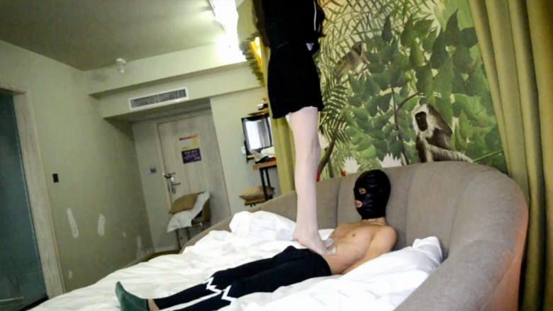 剧情:同事非常迷恋女神的脚,一天趁女神在睡觉,偷偷凑到女神脚边舔起脚来,但是不小心把女神弄醒了,女神非常生气。为了保住自己形象,决定把同事踩死
