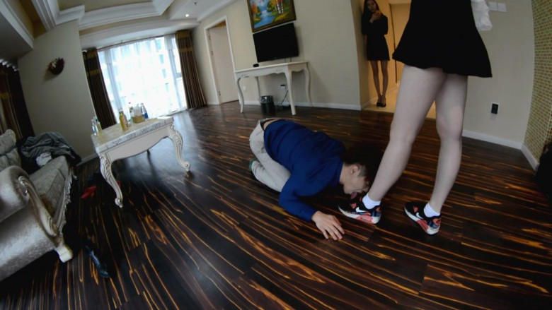 老师丽萍小姐的妹妹,未玲小姐见到奴隶有些惊奇。但很快学着姐姐,踏住奴隶的头,猛地踩到地上,发出“嘭”的声音。原来和她姐姐一样充满了强烈的虐待欲。妹妹走后,姐姐命令奴隶用舌头舔地板。姐妹回来觉得不满意,又玩踩头游戏、并踢奴隶。最后让奴隶伺候妹妹舔脚洗澡…