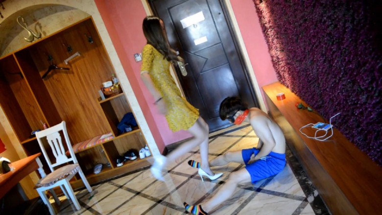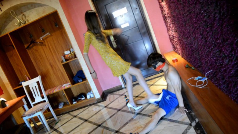 简介:小m被封住嘴巴、双手绑在脑后,被主人用尖尖的高跟鞋踢裆、痛苦不堪
