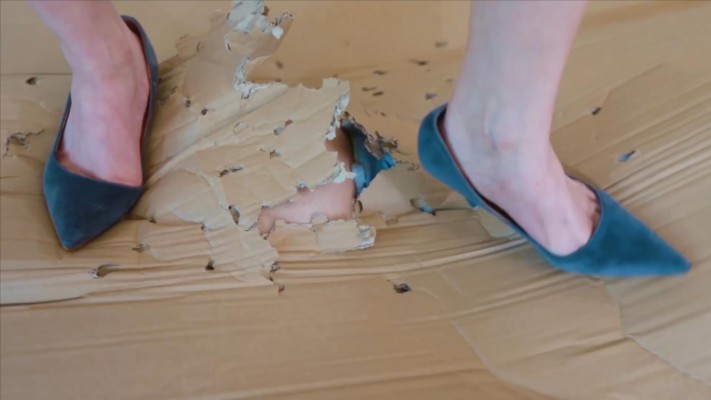 灵灵在小胖奴身上前后放上三张纸皮,全程穿细高跟踩踏。虽然视觉上隔着纸皮,给奴一种缓冲的错觉,实际上随着灵灵下脚一跺,纸皮立即穿透,鞋跟踩进奴的肉里。