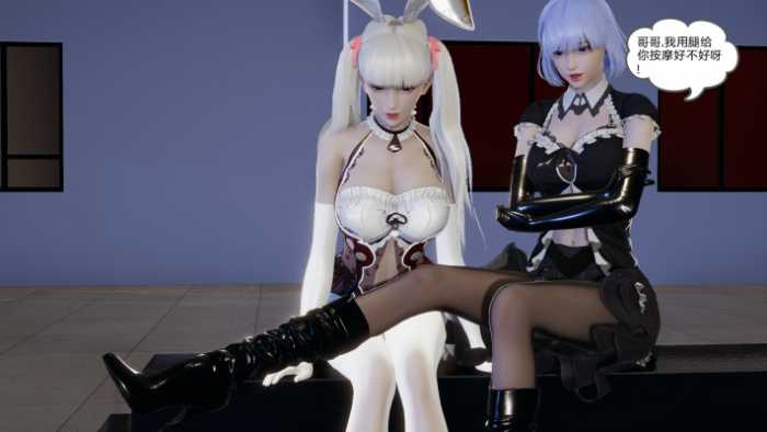 妹妹2 小萌 是白色头发 黑色瞳孔 长双马尾 白色长手套 白色丝袜 兔女郎那种可以
