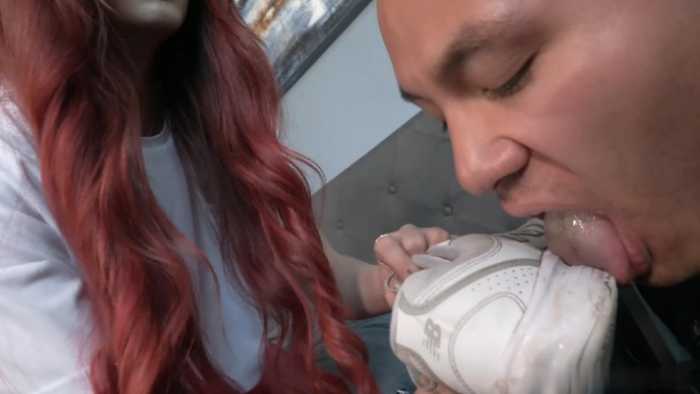 BP-跪舔高颜值势利女的脏鞋底!被捞女May当作鞋刷使用惨遭嘲笑!bf48881