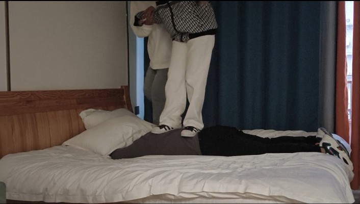 【简介】两位精神小妹婷婷和彤彤小主一起殴打贱狗,一开始两个人疯狂的踢踹贱狗的腰部跳踩,然后贱狗躺在床上被无情的摧残着被打的有点受不了了,小主们用板鞋运动鞋踢踹贱狗的头部真的很疼的非常的真实。然后我让我从她们的胯下跟狗一样来回爬,当我爬过去的时候两位小主别提多高兴了还踹了我几脚。两位小主玩的不亦乐乎还想踩我的背部又把我踹了一会儿,两双鞋子无情的踹在我的手上真的很疼的,两位小主玩累了让我舔她们的鞋底,舔了一会儿在我不知道的情况下又踹了我几下脸还把烟灰弹在我的脸上太羞辱了,两位小主又赏赐了十几个大耳光非常的重有点吃不消把我扇的有点耳鸣了我就叫停了最后还赏赐了我几口香口水,在我正在享受这美味的口水的时候她们又开始踢踹了 还把烟丢在我的头上太刺激了。大家有什么想看的直接评论就好,谢谢大家观看,这个视频肯定让大家满意。(视频有动态水印)