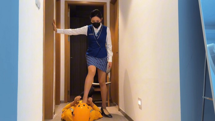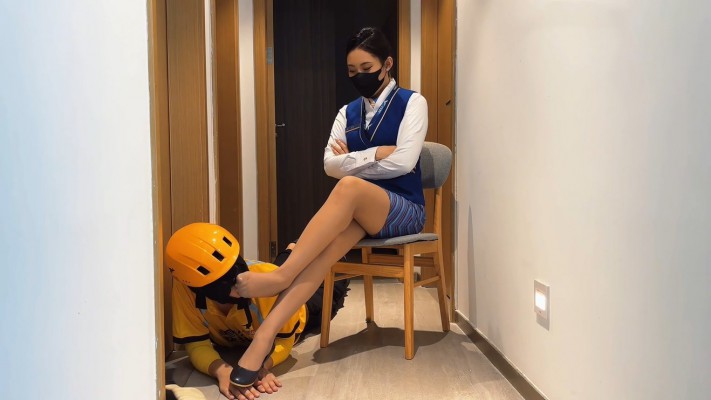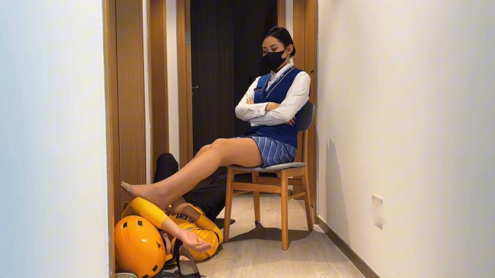 外卖小哥彻底沦为空姐的脚奴,窝在空姐的臭丝袜脚下舔丝袜脚