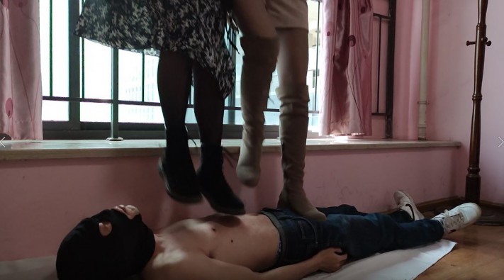 厌和棋棋一起踩踏贱狗,在贱货身上蹦来蹦去、跳踩。